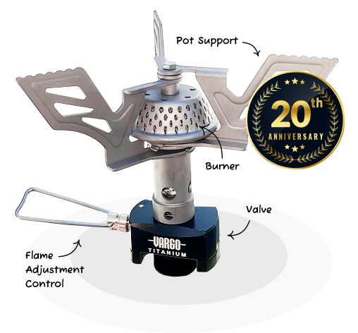 Our 20th anniversary edition advances the features of the original with more titanium and better performance at less weight. Its ultra-tough dual-point pot support design guarantees better stability and durability ensuring the Jet-Ti 2 stove maintains its status as the toughest ultralight stove for any of your adventures. Of course, it’s backed by the 100% Vargo Guarantee to give you peace of mind both on and off the trail.