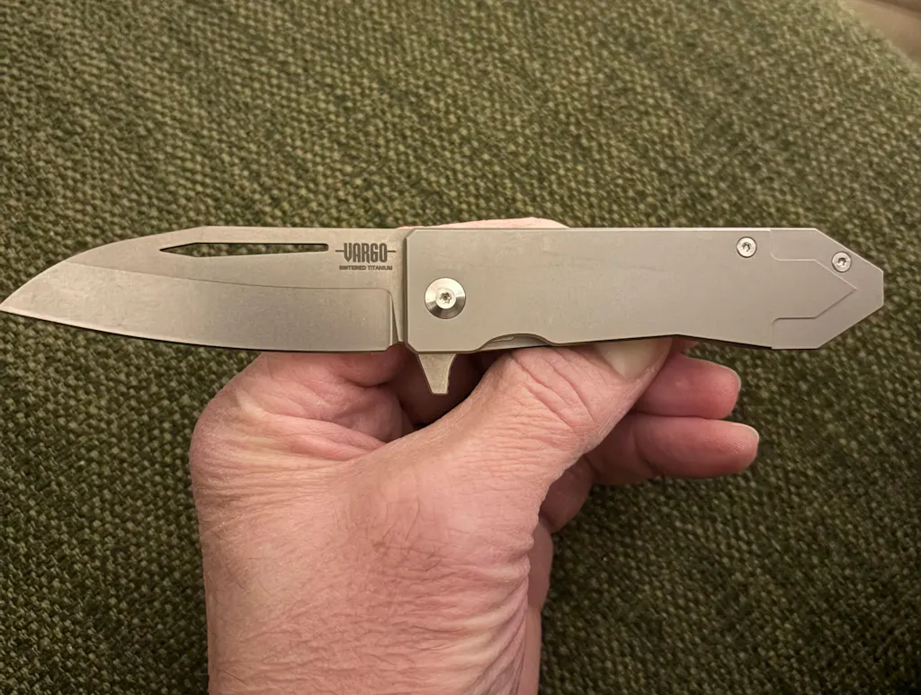 Simply put, I love this folder. The sintered titanium is an interesting material for a blade and it is brilliant. It really does hold a fine edge and cuts like a champion. The ultra light design takes some getting used to as this Sobata-398 functions easily as well as the heavier stainless steel knives we’re all familiar with, but weighs a fraction. I’ve collected unique knives from around the world but I’m very intrigued with what Vargo is doing and I hope to see more in the future.